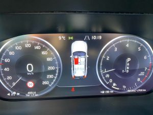 Parking sensors front/back – also detects cars and cyclists approaching from the side while in drive/reverse at low speeds (e.g. leaving a parking spot or a garage) and an audio alarm indicates the direction the car/cyclist is coming from